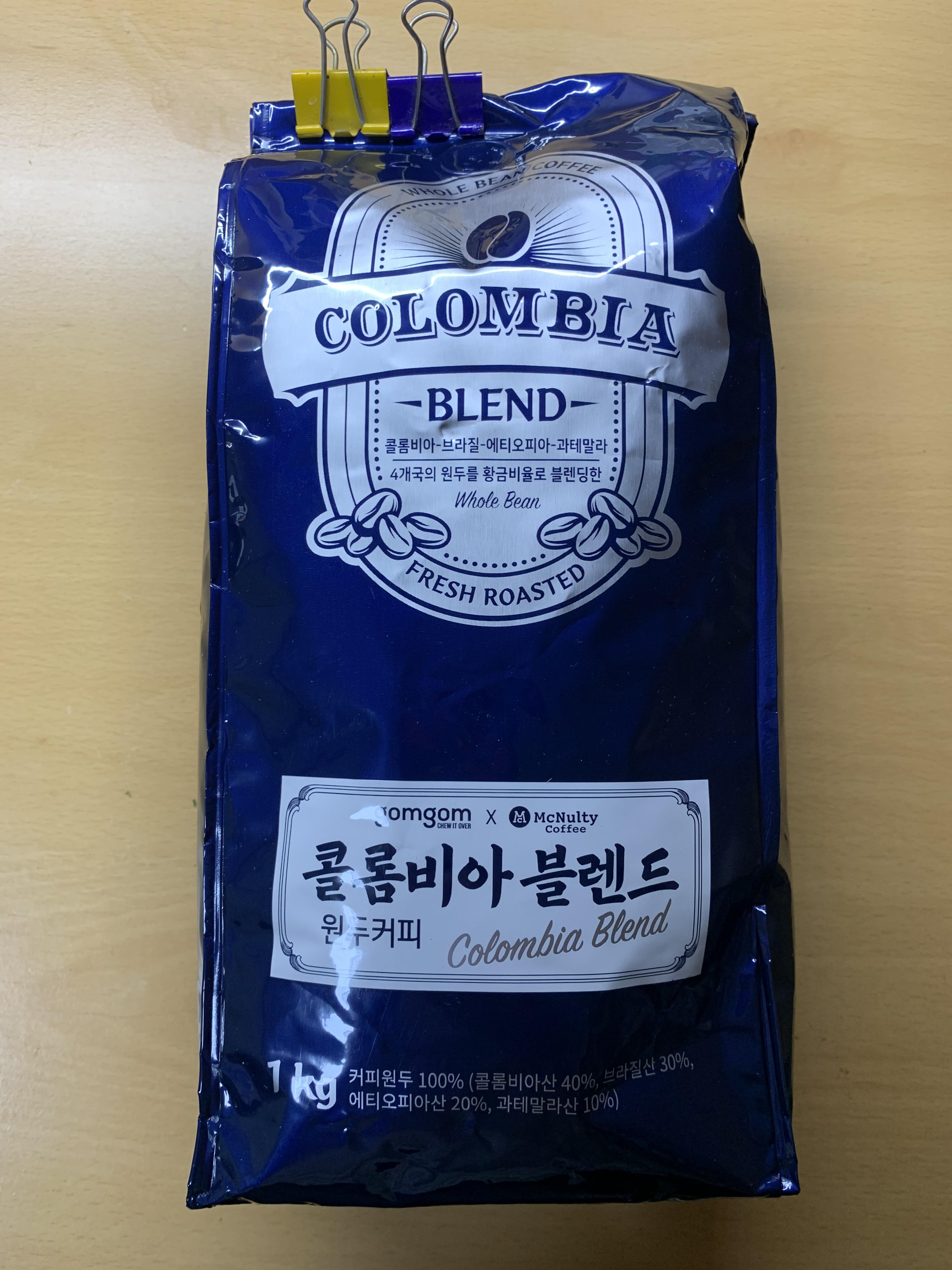 [원두 리뷰] 곰곰 콜롬비아 블렌드 제품명 : 곰곰 콜룸비아 블렌드 원두 구성 : 콜롬비아산 40%, 브라질산 30%, 에티오피아산 20%, 과테말라산10% 구매날자 : 10월 6일 음용날짜 : 10월 6일 로스팅 날자 : 미표기 산미는 거의 없는편이고 쓴맛이 매우 강하지도 않으며 준수합니다. 산미가 강한 즉, 신 커피를 싫어하는 사람에게 추천할만 합니다. 가격대 또한 비싸지는 않은것으로 생각됩니다. 커피 2020.10.06
